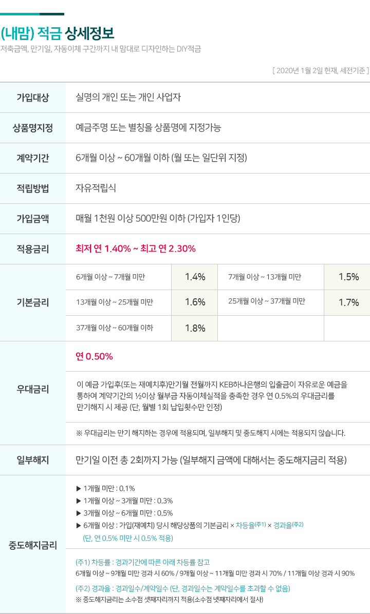 오늘은 내맘대로 저축할 수 있는 하나은행 (내맘)적금에 대해 알아보았습니다. 2020년 새해에는 (내맘)적금으로 저축도 하고, 이루고 싶은 목표도 이루고, 하나은행과 함께 부자 되세요~