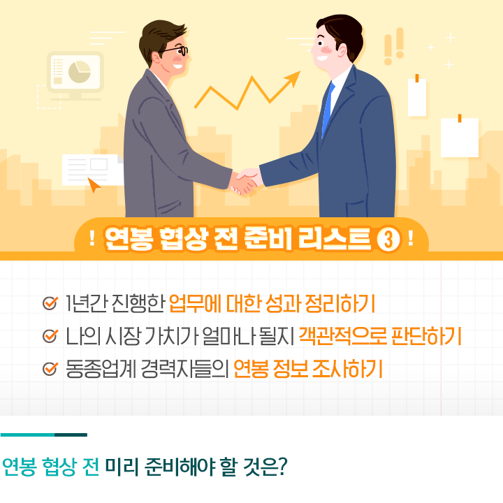 연초가 되면 새롭게 연봉 협상을 진행한 직장인들이 많습니다. 지난 1년간의 업무 실적과 성과를 토대로 자신의 몸값을 올릴 수 있는 기회인 만큼 1년 중 가장 중요한 시기이기도 한데요. 회사에서 제시하는 대로 수동적인 연봉 협상에 임하다 보면, 만족스럽지 못한 연봉으로 1년을 보내게 될 수도 있습니다. 이렇듯 연봉 협상에도 나름의 준비와 기술이 필요한데요. 오늘은 직장인이라면 꼭 알고 있어야 할 연봉 협상의 기술에 대해 알아보겠습니다.