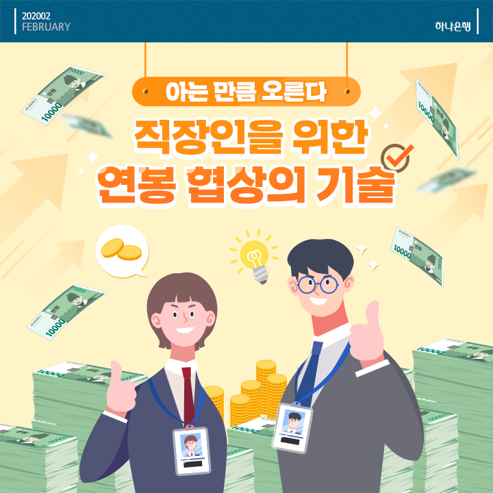 이제 곧 새롭게 올해 연봉 협상을 진행하실 분들도 있을 것 같은데요. 오늘 소개해드린 내용을 바탕으로 자신감 있게 협상에 임하시고, 꼭 원하는 결과 얻으실 수 있기를 하나은행이 응원하겠습니다.