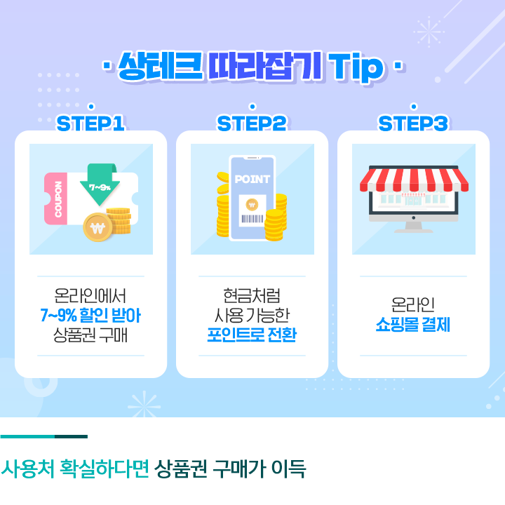 그런데 상품권을 잘만 활용하면 최대 10%의 이익을 보는 ‘상테크(상품권+재테크)’가 가능하다는 사실, 알고 계셨나요? 오늘은 하나은행 1Q블로그와 함께 생활비, 세금 납부 등에 활용할 수 있는 ‘상테크’ 노하우에 대해 알아보도록 하겠습니다.