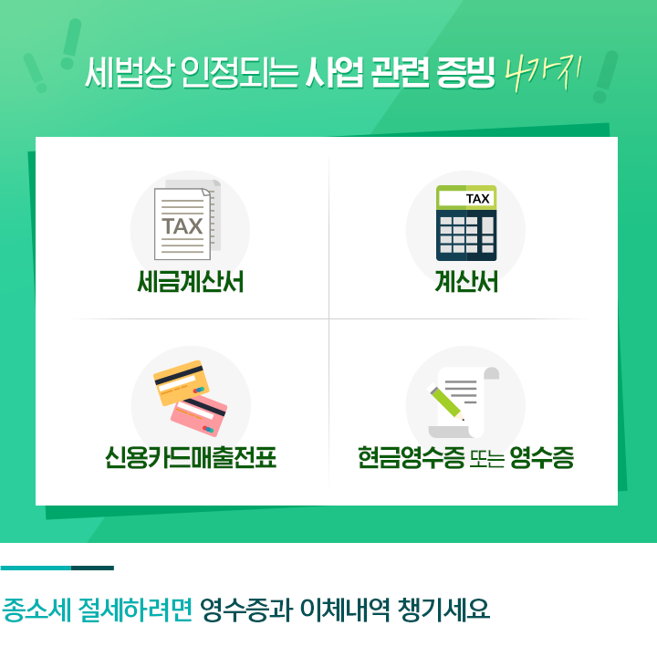 종합소득세는 1년간 벌어들인 매출과 사용한 비용을 계산해 산출하기 때문에, 매출액이 줄거나 비용이 증가해야 세법상 세금도 줄어듭니다. 하지만 매출을 인위적으로 줄여서 신고하는 것은 불법 탈세가 되겠죠? 따라서 법에 어긋나지 않는 선에서 세금을 최대한 절세하기 위해서는 사업 관련 비용을 최대한 정확히 빠뜨리지 않고 신고해야 하는데요. 소득세법에 따라 인정받을 수 있는 사업 경비는 사업 수익 발생을 위해 사용한 경비로 한정됩니다. 이를 입증하기 위해서는 관련 증빙을 잘 챙기는 것이 무엇보다 중요한데요.