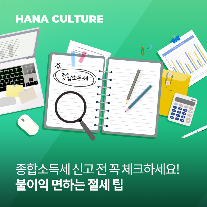 세무 전문가들은 절세 방법 중 자신에게 해당하는 부분이 단 몇 개라도 있다면 잊지 말고 활용하는 게 중요하다고 입을 모으는데요. 특히 소득세는 한 번 신고하는 데 그치지 않고 매년 납부해야 하는 만큼, 자신에게 유리한 절세 방법을 꼼꼼히 익혀두는 게 중요하겠죠? 올해 소개해드린 내용을 바탕으로 종합소득세 신고에 대한 부담을 조금이나마 덜어내셨기를 바랍니다.