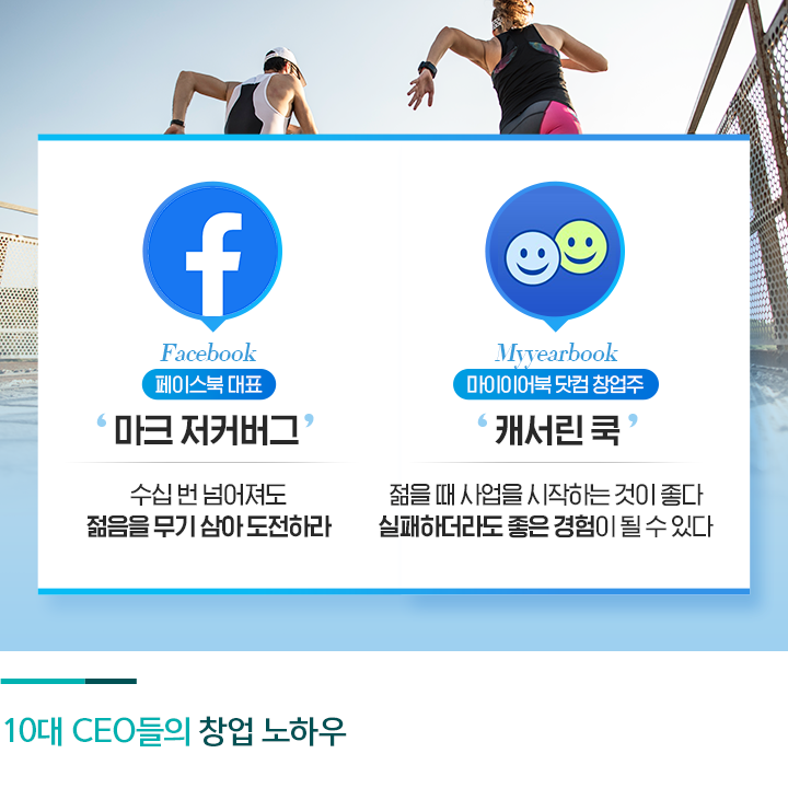 또 뉴저지의 14살 평범한 소녀였던 캐서린 쿡은 오빠와 함께, 새로운 도시로 이사하며 그 학교 사람들과 빨리 만나서 적응할 방법을 모색하다가 사업에 대한 영감을 얻었습니다. 그렇게 탄생한 게 마이이어북 사이트인데요. 마이이어북은 고등학생을 위한 맞춤형 소셜 네트워킹 사이트로, 6년 만에 사이트 이용자 수가 3,200만 명을 넘어섰습니다. 매출은 2,370만 달러에 달했는데요. 2011년 캐서린 쿡은 1억 달러에 회사를 팔았다고 하네요.