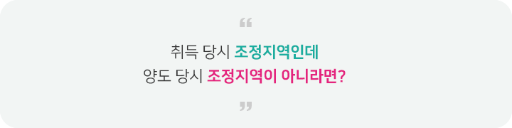 앞선 내용과 반대의 경우로 취득 당시 조정지역이 아닌데, 양도 당시 조정지역이라면 거주 요건이 필요 없습니다. 예를 들어 수원시 팔달구의 경우 2018년 12월 31일 조정지역으로 고시되었지만 2018년 12월 30일 이전에 주택을 구입하고 2019년 이후에 매매했다면 양도 당시 조정지역이라도 거주요건이 필요 없습니다.