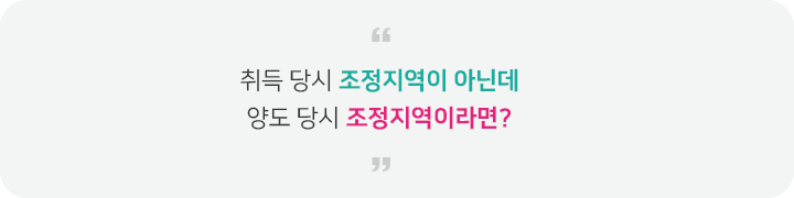 앞선 내용과 반대의 경우로 취득 당시 조정지역이 아닌데, 양도 당시 조정지역이라면 거주 요건이 필요 없습니다. 예를 들어 수원시 팔달구의 경우 2018년 12월 31일 조정지역으로 고시되었지만 2018년 12월 30일 이전에 주택을 구입하고 2019년 이후에 매매했다면 양도 당시 조정지역이라도 거주요건이 필요 없습니다.