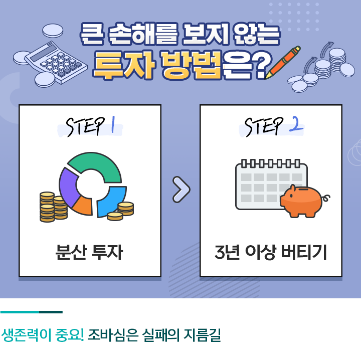 책 『재테크 선수촌』에 따르면 재테크의 체력을 기르기 위해서는 꾸준히 버티는 생존력이 필수입니다. 단기간 손실을 봤다고 해서 쉽게 갈아타버린다면 손실을 보기 쉬운데요. 시장의 단기적 변화에 일희일비하지 말고, 객관적인 시각을 통해 투자를 신중하게 결정해야 합니다.