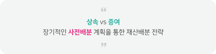 재산은 물려주는 사람, 물려받는 사람 모두가 행복하고 감사할 때 최고의 가치가 있습니다. 후일 가족 간의 갈등을 없애기 위해서라도 재산을 물려줄 때에는 가족간의 이해와 형평성 있는 분산은 반드시 고려해야 할 중요한 사항입니다.