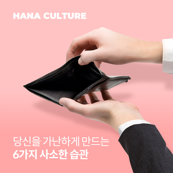 전문가들은 일상 속 작은 습관이 누군가를 부자로 만들 수도, 가난하게 만들 수도 있다고 지적합니다. 지금부터 하나은행 1Q블로그와 함께 여러분을 가난하게 만드는 사소한 습관 6가지를 알아보겠습니다.
