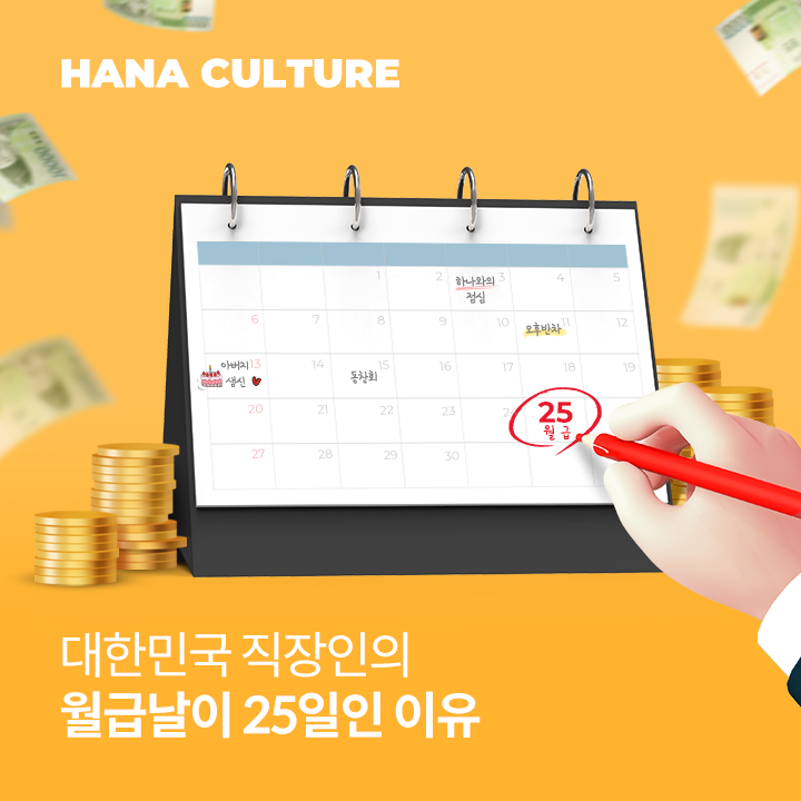 그렇다면 여러분은 우리 회사의 월급날이 왜 25일인지 생각해본 적 있으신가요? 대한민국 직장인의 월급날에 얽힌 이야기를 하나은행 1Q블로그와 함께 알아보겠습니다.
