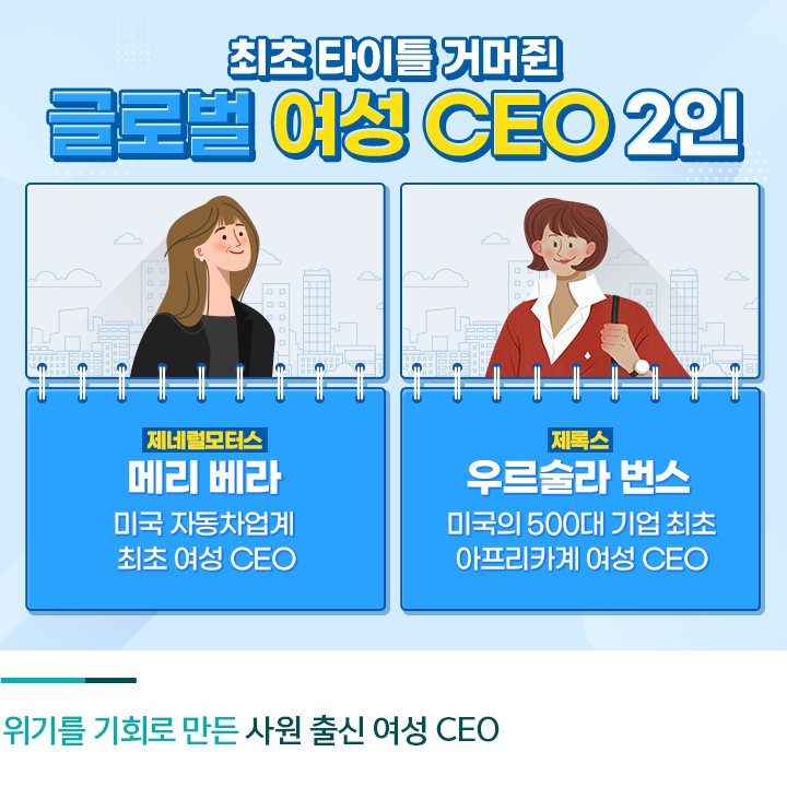 글로벌 기업 최고경영자(CEO) 가운데서는 평사원으로 시작해 한 회사의 수장에 오른 사례가 더 많은데요. 그렇다면 이들의 성공 비결은 과연 무엇일까요? 오늘은 하나은행 1Q블로그와 함께, 평범한 직장인에서 CEO의 자리까지 오른 사람들의 성공 사례와 그 비결을 알아보도록 하겠습니다.