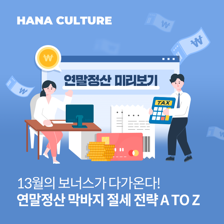 직장인이라면 매년 하는 연말정산. 누군가에게는 기분 좋은 13월의 보너스가, 또 누군가에게는 괴로운 세금 폭탄이 되기도 하는데요. 연말이 오기 전에 어떻게 준비하느냐에 따라서 연말정산 환급액도 크게 달라질 수 있습니다. 오늘 하나은행 포스트와 함께 연말을 앞두고 절세 전략 짜는 팁을 알아보겠습니다.