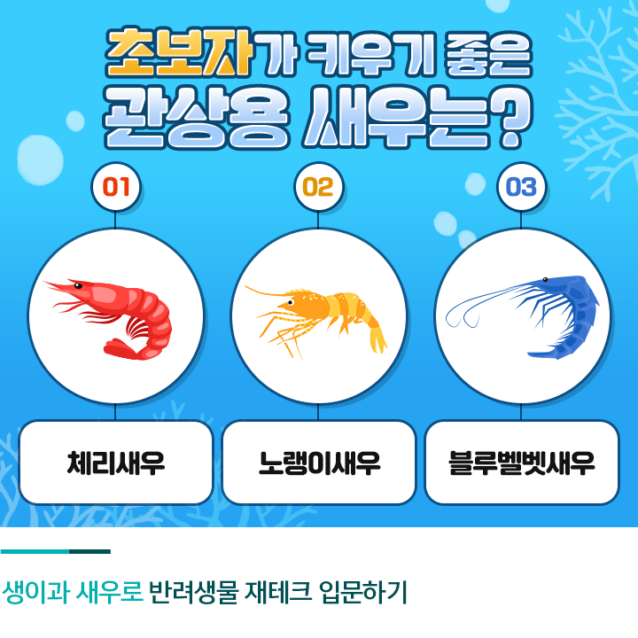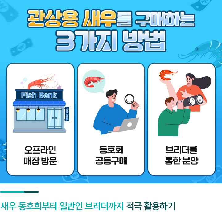 관상용 새우를 재테크라는 측면에서만 접근한다면 키우는 과정이 또 다른 스트레스로 다가올 수 있는데요. 관상용 새우를 키우는 것 자체에 흥미를 가져야만 자연스럽게 부수입도 따라온다는 생각을 갖는 것이 중요합니다.
