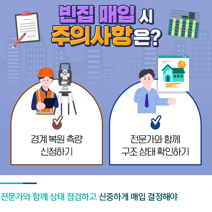 빈집 재테크를 위해선 주택 매입과 리모델링이 필수인데요. 전문가들은 빈집을 매입하기 전 꼼꼼한 사전조사가 반드시 선행되어야 한다고 입을 모읍니다. 특히 오래된 주택의 경우 지적도에 등록된 경계를 침범하고 있는 경우가 종종 있어 경계 복원 측량을 신청하는 게 좋습니다.
