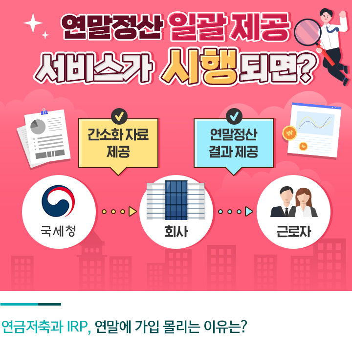 최근 연말정산과 관련해 반가운 소식이 있습니다. 지금까지는 근로자가 국세청 홈택스나 세무서에서 자료를 받아 회사에 제출하는 과정을 거쳤는데요. 이 과정이 복잡하고 어렵게 느끼는 분들이 많았습니다. 이런 불편함을 개선하기 위해 국세청이 「연말정산 일괄제공 서비스」를 도입한 것입니다.
