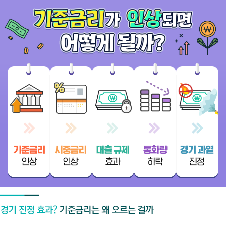 기준금리가 인상됐다는 소식을 들으면 일반적인 금융소비자, 특히 대출이 이미 있거나 받아야 하는 사람들은 신경이 쓰일 수밖에 없을 텐데요. 특히 빚을 내서 주식, 또는 가상화폐 등에 투자하고 있다면 예비 자금 확보 차원에서 매도를 검토할 필요성이 있다고 말하기도 합니다. 기존 대출이 많은 상황에서는 많은 돈을 버는 것보다 어떻게 잘 상환해 나가는지가 중요하기 때문입니다.
