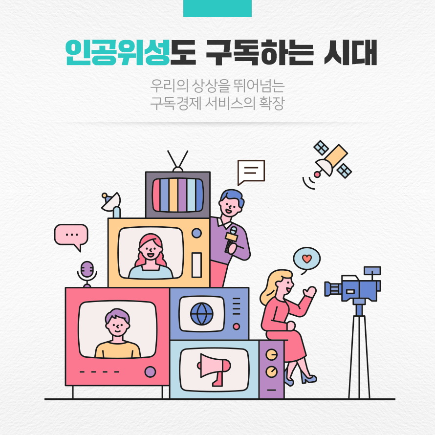 소프트웨어를 월정액 구독액으로 판매하는 마이크로소프트, 어도비, 세일즈포스 등 기업들도 구독경제의 대표적인 성공 사례입니다. 마이크로소프트는 2014년부터 소프트웨어 CD를 판매하는 대신 상업용 클라우드 오피스 구독 서비스에 집중했고 어도비는 포토샵과 일러스트레이터 등의 소프트웨어를 구독 서비스로 전환한 뒤 구독 매출 비중이 2013년 28%에서 2018년 88%로 증가하였습니다. 특히 2020년 마이크로소프트는 구독료만 내면 인공위성을 이용할 수 있는 클라우드 서비스 애저오비털을 발표하면서 우리의 상상을 뛰어넘는 구독 서비스의 확장을 보여주었죠.