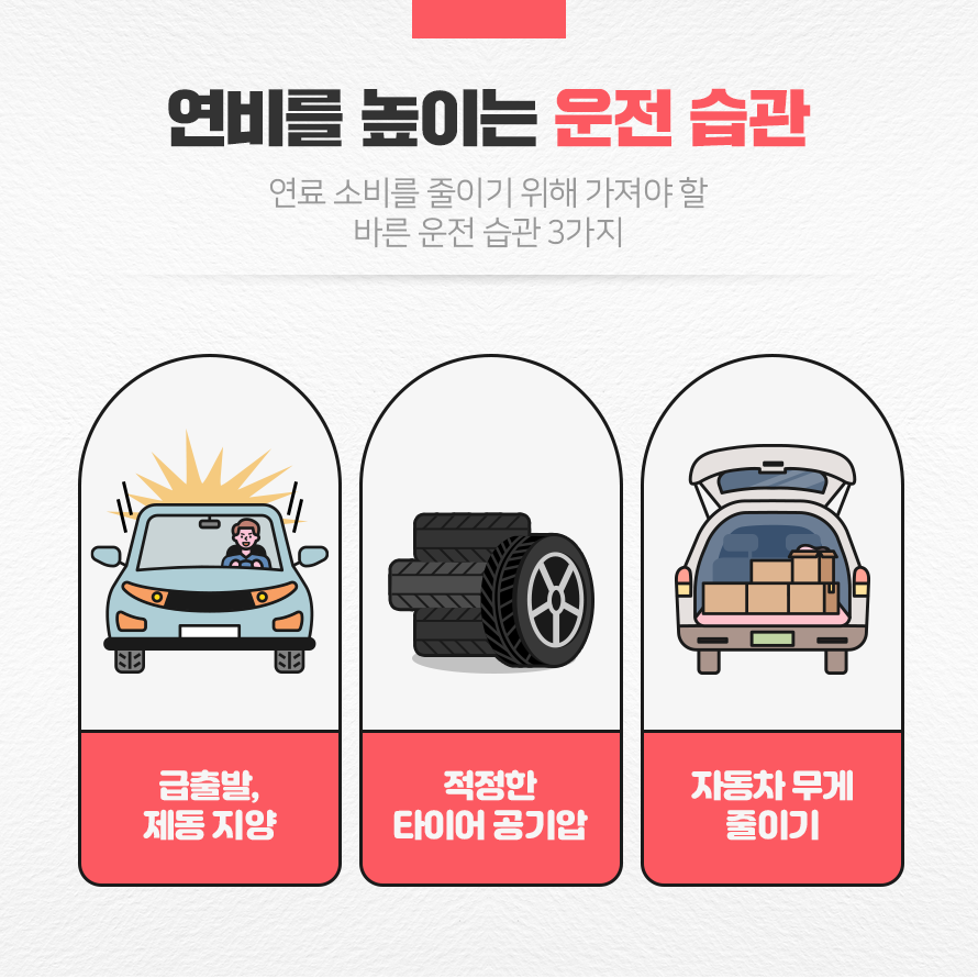 계속해서 물가와 유가가 오르는 상황 속에서 돈을 모으는 기초 체력인 절약 습관을 키우는 것이 곧 자산이라고 할 수 있습니다. 절약하지 않으면 부자가 될 수 없듯이 절약하는 운전 습관을 만들어 보시기 바랍니다.