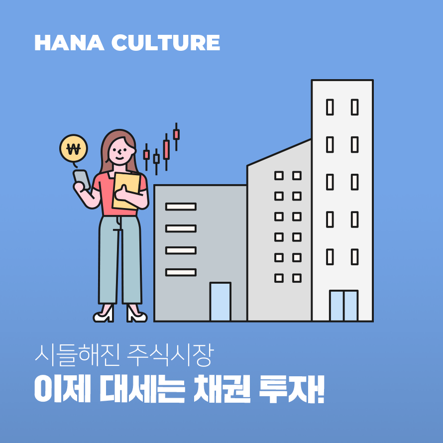 2022년 상반기부터 이어진 급격한 물가상승과 금리인상으로 국내외 증시가 약세장으로 돌아서자 채권 투자에 대한 관심이 어느 때 보다 높아지고 있습니다. 불안정한 주식보다는 안전자산인 채권 시장으로 투자자들의 눈이 몰리고 있는 상황인데요. 오늘은 시들해진 주식시장 대신 떠오르고 있는 채권 투자에 대해 알아보도록 하겠습니다.