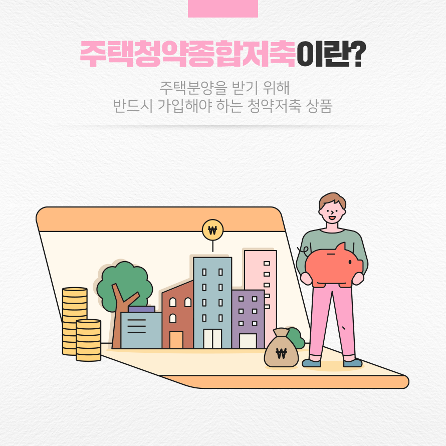 주택청약제도는 1970년대 도시 주택 문제가 심화되자 생긴 제도로, 희망자에게 응모를 받은 후 순차적 또는 추첨을 통해 주택을 분양하는 것을 말합니다. 주택 분양에 응모하기 위해서는 주택청약 상품에 가입한 뒤 일정한 입주 자격을 갖추어야 합니다. 과거에는 분양주택 종류 및 전용면적에 따라 가입해야 하는 청약 통장 종류가 달랐으나, 현재는 청약예금, 청약부금, 청약저축의 기능을 모두 통합한 ‘주택청약종합저축’에 가입하면 됩니다.