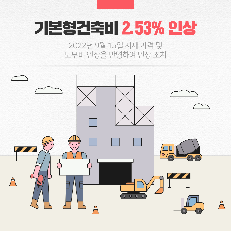 기본형건축비란 공공과 민간의 일반분양 품질 수준의 주택을 기준으로 주택 건축에 소요되는 제반 비용을 말합니다. 주택 분양가는 택지비, 택지 가산비, 건축 가산비에 기본형건축비를 더해 산정되기 때문에 기본형건축비가 오르면 아파트 분양가도 상승하게 됩니다.