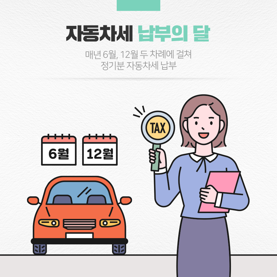 12월은 2022년 두 번째 정기분 자동차세를 납부하는 달입니다. 일반적으로 정기분 자동차세는 6월과 12월에 후불로 부과됩니다. 이때 두 차례에 걸쳐 납부하게 되는 자동차세를 미리 한 번에 납부할 경우 최대 9.15%의 공제 혜택을 받을 수 있습니다. 오늘은 차량을 소유한 납세자라면 놓치지 말아야 할 ‘자동차세 연납 신청’에 대해 알아보도록 하겠습니다.