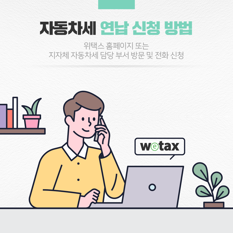 자동차세 연납 신청은 위택스 홈페이지에서 가능합니다. 부가서비스에서 자동차세 연납 신청을 누른 후, 신청정보와 차량번호, 환급계좌를 입력하고 신청하면 됩니다. 차량이 공동명의인 경우 대표명의자로 신청하면 됩니다. 그 밖에도 지자체 자동차세 담당 부서에 방문하거나 전화로도 신청 가능합니다.