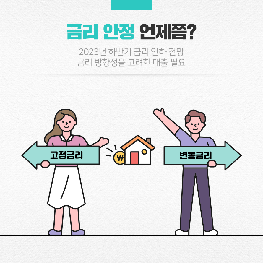 금리 인상기에 대출 이자 부담은 점점 높아지고 있습니다. 이에 고정금리 주택담보대출로 관심이 쏠리고 있습니다. 본인에게 가장 적합한 대출 상품이 무엇인지 잘 판단하여 경제적 부담을 줄이는 선택이 필요하겠습니다.