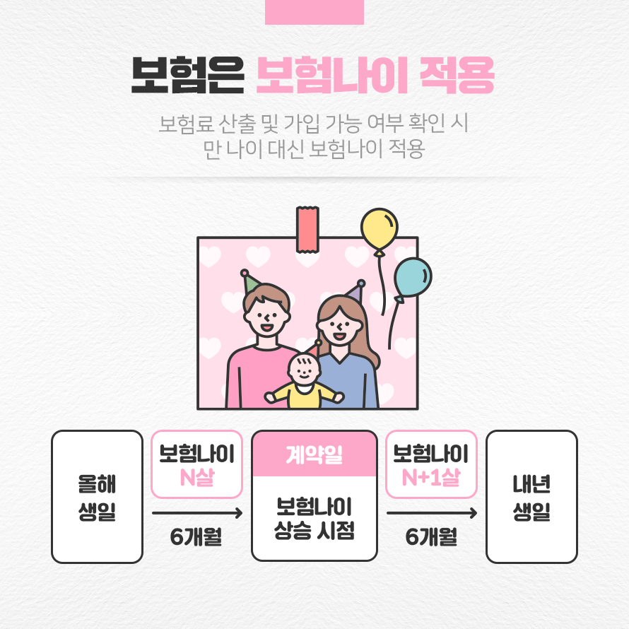 보험의 경우 만 나이도 연 나이도 아닌 아예 다른 기준을 적용합니다. 일명 보험나이라고 부르는데, 보험료를 산출하거나 가입 가능 여부 및 만기 시점을 확정 짓는 기준이 됩니다.