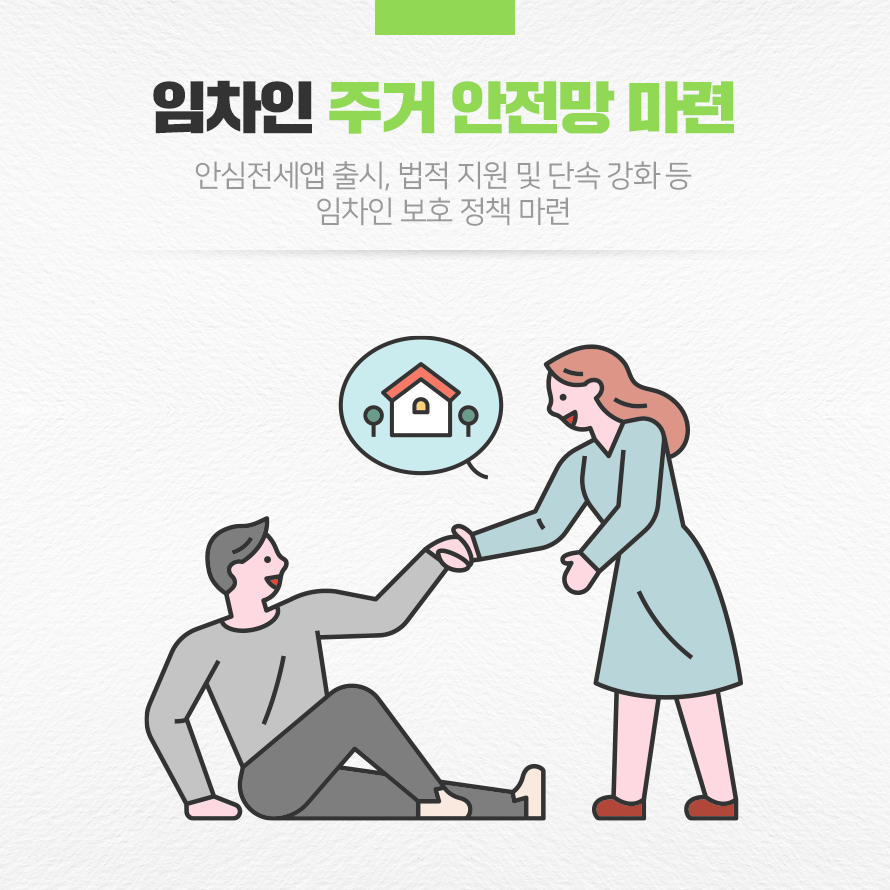 긴급주거지원 정책도 개선합니다. 기존에는 살던 집의 면적과 같거나 작은 주택에 한해 지원 가능했고, 6개월 치 월세를 선납해야 했습니다. 앞으로는 월 단위로 나누어 낼 수 있고, 살던 주택보다 크더라도 유사한 면적이라면 입주할 수 있습니다. 또한 긴급 지원주택의 최대 거주 기간인 2년 이후에도 새집을 구하기 어렵다면 국토교통부에서 공공임대주택 입주를 지원하기로 했습니다.