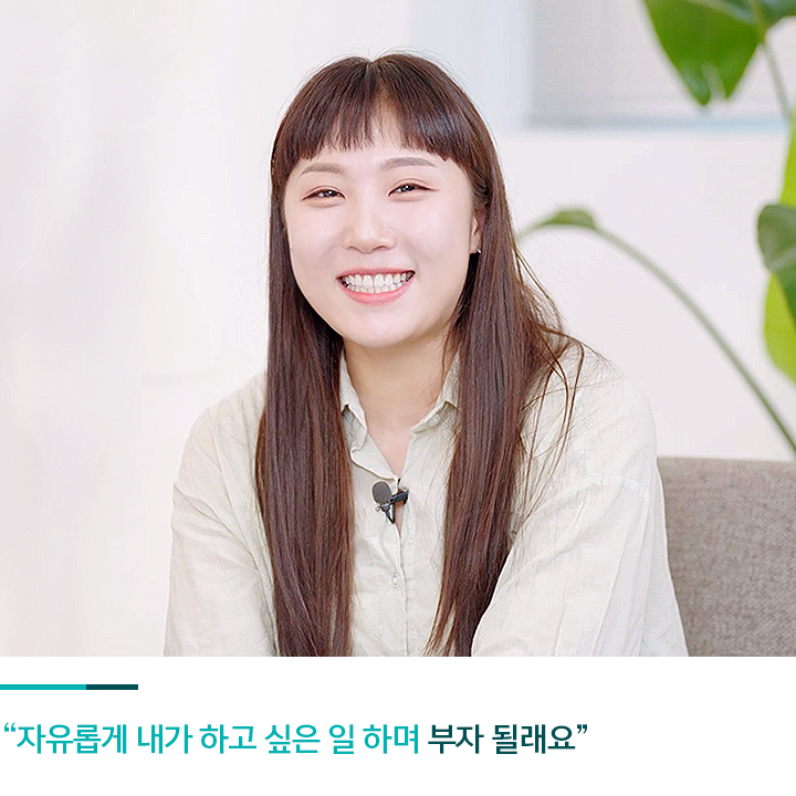 “직장인의 안정적인 점이 부럽긴 하지만, 프리랜서인 지금이 더 좋아요. 시간을 쓰는 것도 더 자유롭고 제가 좋아하는 일이거든요. 이전에 개그 콘테스트에서 수상을 하면서 3천 만원을 번 적이 있었는데 너무 뿌듯하더라고요. 제가 좋아하는 일을 하면서 프리랜서로서 돈을 많이 벌고 싶어요. 적어도 직장인이 버는 만큼 프리랜서로서 돈을 벌고 싶어요. 감사하게도 지금 준비하고 있는 건들이 잘 되면 두 달 안에는 목표를 이룰 수 있을 것 같아요.”