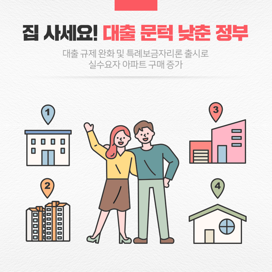 한동안 주춤했던 젊은 세대의 주택 구매가 연이은 집값 하락과 주택담보대출 금리 인하로 다시 살아나고 있습니다. 내 집 마련 꿈에 부풀어 과도한 대출을 통한 투자를 하지 않도록 주의가 필요합니다. 본인에게 유리한 대출 상품과 각종 정책을 활용하여 안전하게 내 집 마련을 이루시길 바랍니다.