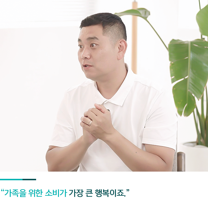 “아이들, 저희 집사람이 맛있는 것을 먹고, 좋은 옷을 입었을 때 행복을 느껴요. 제가 저를 위해 소비를 하는 것보다는 가족들이 행복해하는 모습을 봤을 때가 더 행복해요.”