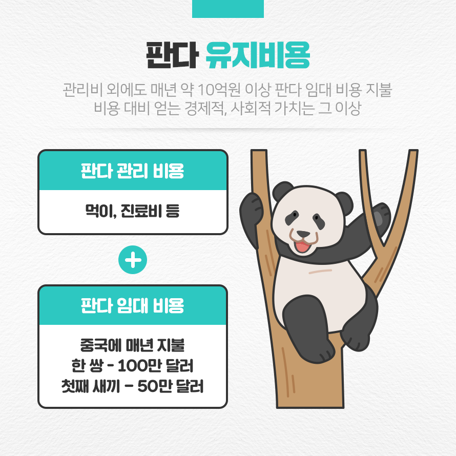 숫자만 놓고 보면 비용이 많이 든다고 생각할 수 있지만, 판다 1마리를 키움으로써 얻는 경제적, 사회적 가치는 그 이상입니다. 입장료, 굿즈 구매 등으로 인한 경제 효과가 있을 뿐만 아니라, 멸종 취약종 보호, 사회 공헌 등 다양한 이점이 있기 때문입니다.