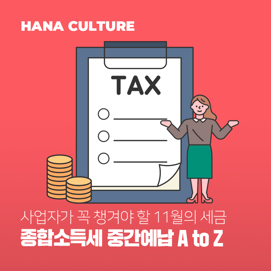 11월은 ‘종합소득세 중간예납세액 납부의 달’입니다. 5월에 이미 종합소득세를 납부했는데, 11월에 종합소득세 중간예납 청구서가 날아오면 당황스러울 수 있는데요. 5월에 더해 세금을 추가로 납부하는 것이 아니라, 당해년도 상반기(1월 1일~6월 30일)에 번 소득에 대해 세금을 내는 것이니 안심하셔도 됩니다. 오늘은 개인사업자라면 꼭 알고 있어야 하는 ‘종합소득세 중간예납’에 대해 알아보도록 하겠습니다.