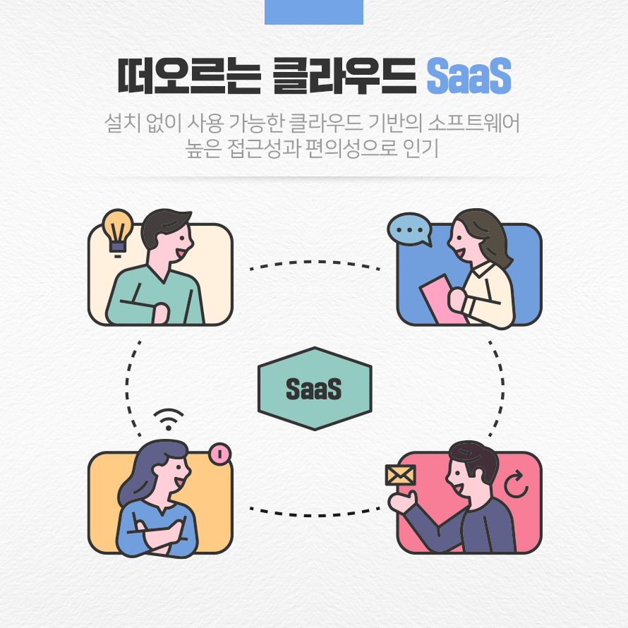 SaaS는 라이선스 구매 및 설치와 관계없이 구독료를 내고 소프트웨어를 이용할 수 있습니다. 따라서 기업은 초기 투자 비용을 크게 줄일 수 있을 뿐만 아니라, 사용자 수, 기간 등에 따라서 구독료를 유연하게 조정할 수 있습니다. 또한 클라우드 제공 업체에서 유지 보수에 대한 책임을 지기 때문에 기업 입장에서는 관리 부담 및 리스크를 줄일 수 있습니다.