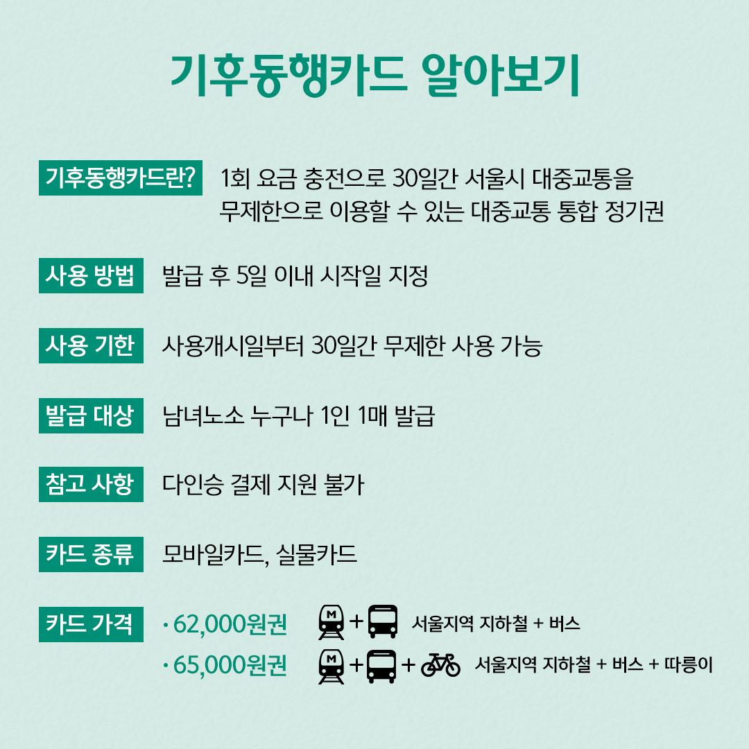 대중교통, 많이 탈수록 이득! 기후동행카드