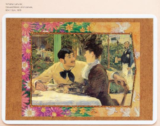 사랑을 담은 연인의 시선 하면 르누아르의 선배인 에두아르 마네(Edouard Manet)가 그린 <라퇴유 영감네 레스토랑에서>를 빼놓을 수 없다. 따스한 봄 햇살이 비치는 파리의 한 레스토랑, 야외 자리에 앉은 남자는 뜨겁고도 열정적인 시선으로 연인을 바라본다.