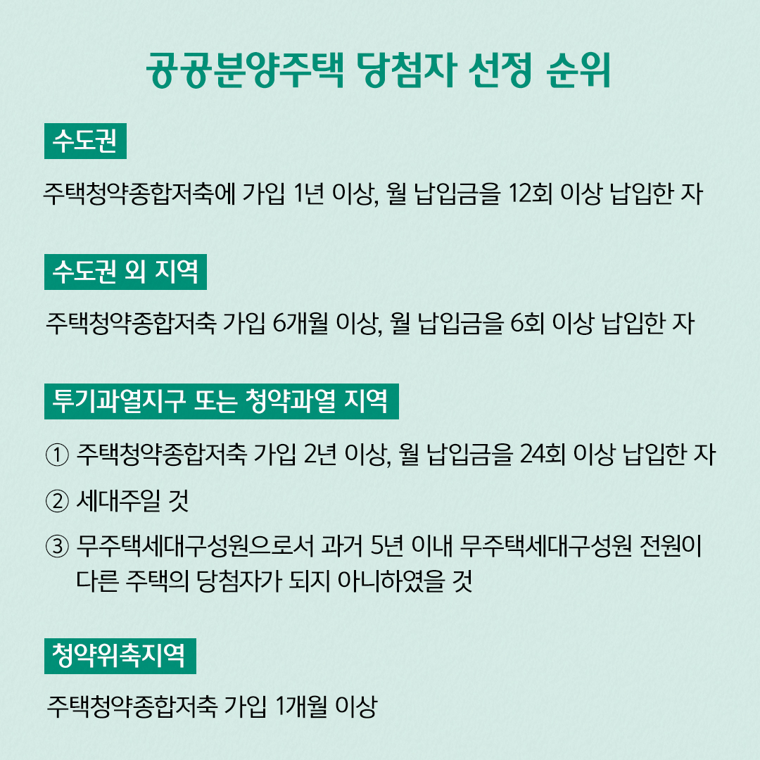 3) 투기과열지구 또는 청약과열 지역: 주택청약종합저축 가입 2년 이상, 월 납입금을 24회 이상 납입한 자