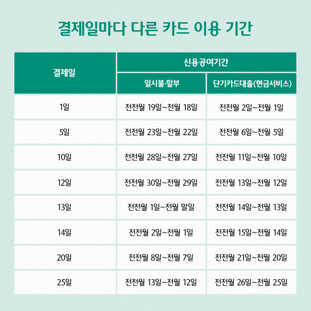 #결제일마다 다른 카드 이용 기간