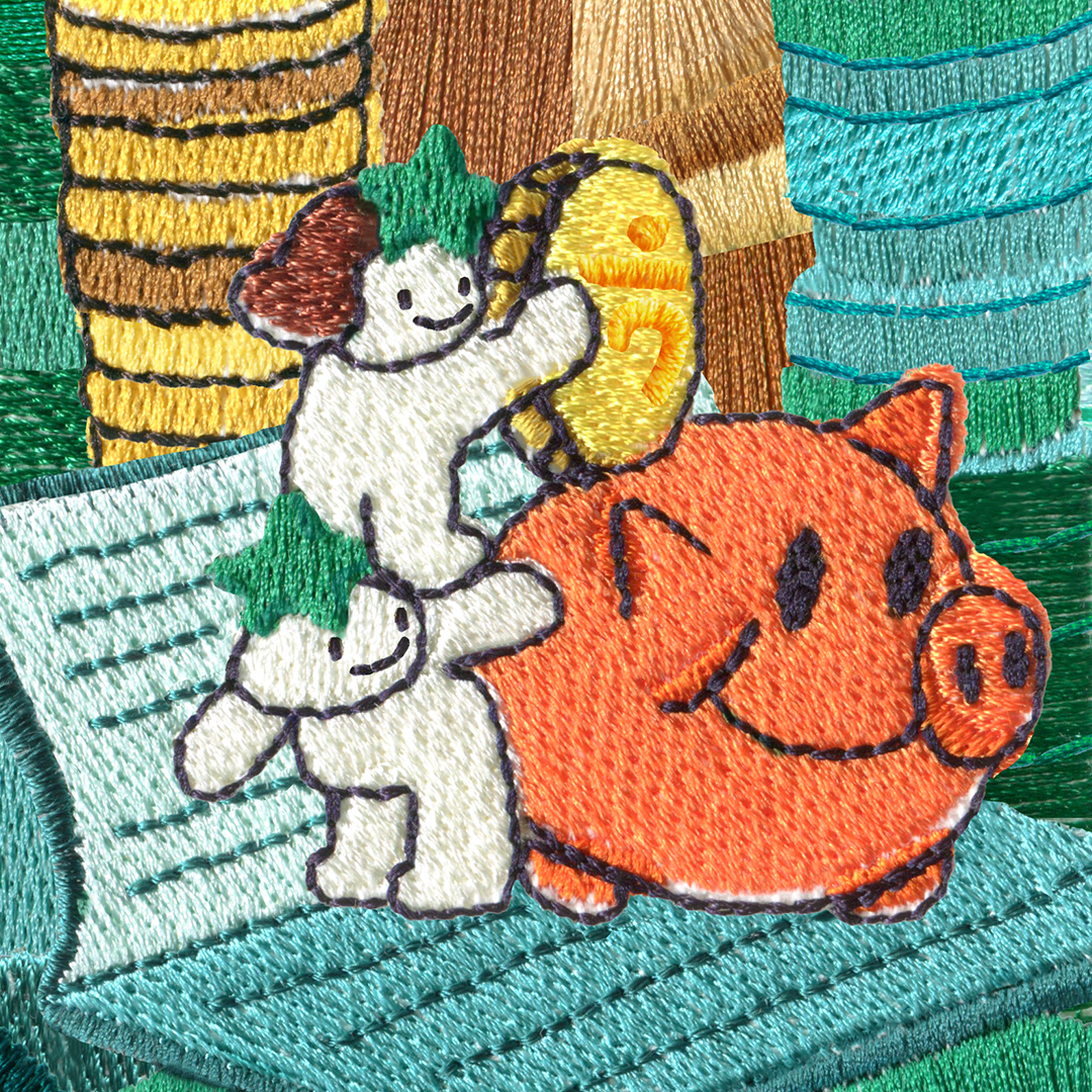 그렇게 하나은행과 고주연 작가가 만나 “한 땀 한 땀 엮어낸 하나의 금융”이 탄생했습니다. 하나은행의 마스코트인 별돌이와 별송이는 물론이고 은행, 통장, 동전, 저금통 등 금융을 상징하는 다양한 요소들이 조화롭게 어우러져 하나의 커다란 그림으로 완성되었습니다. 금융을 상징하는 오브제들이 모여서 하나의 커다란 그림이 되듯이 이 모든 금융 서비스가 긴밀하게 연결되어 있다는 메시지를 담고 있습니다.