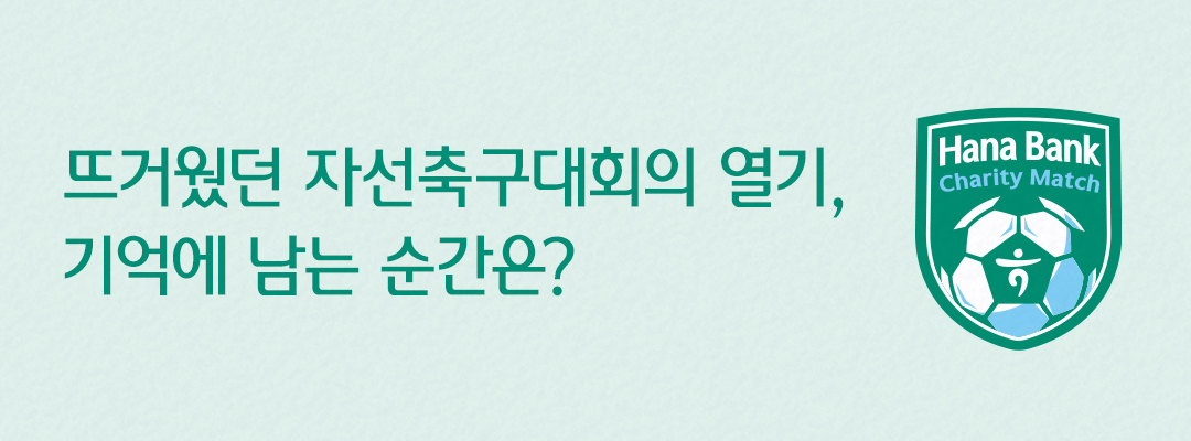 따뜻한 마음과 축구의 열정이 어우러진 ‘2024 하나은행 자선축구대회’가 3만 5천여 명의 관중과 함께 성공적으로 진행되었습니다. 스포츠 이벤트를 넘어, 소외된 이웃을 돕기 위해 모두가 하나 되었던 그날의 함성을 소개합니다.