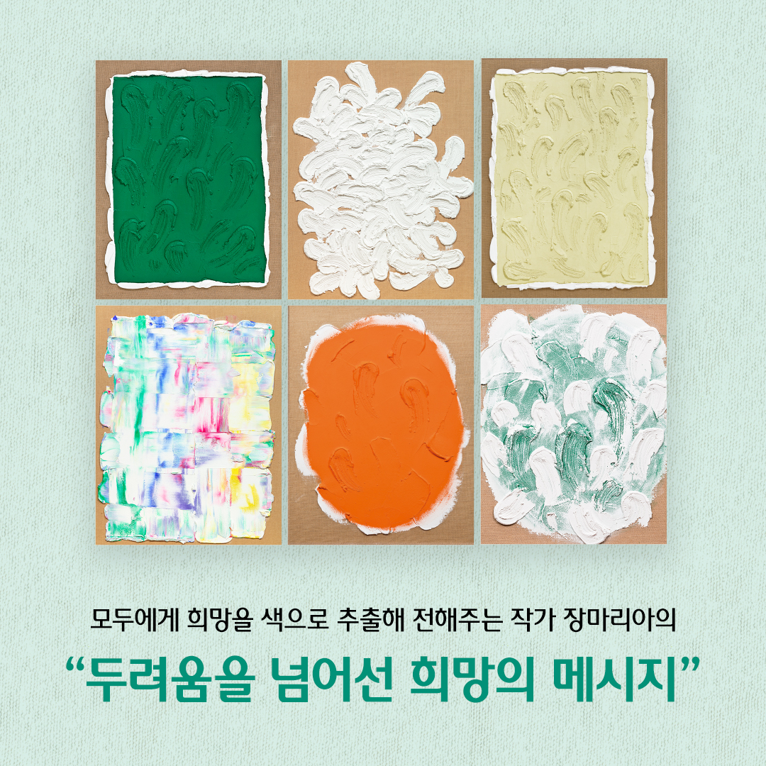 “사람의 감정을 색으로 추출하는 화가”라는 극찬을 받은 장마리아 작가는 여러 글로벌 명품 브랜드와 셀럽, VIP가 주목하는 국제적 반열에 오른 추상회화 작가입니다. 비비드한 컬러와 독특한 질감으로 표현되는 자신만의 화풍은 관람객에게 잔잔하지만 진한 감정을 불러일으킵니다. 이는 30대 초반의 화가가 살아가면서 마주하는 어려움을 극복해 나아가며, 오래전부터 자신의 내면에 귀 기울이며 탐색한 시간을 통해 구축한 유니크한 스타일입니다.