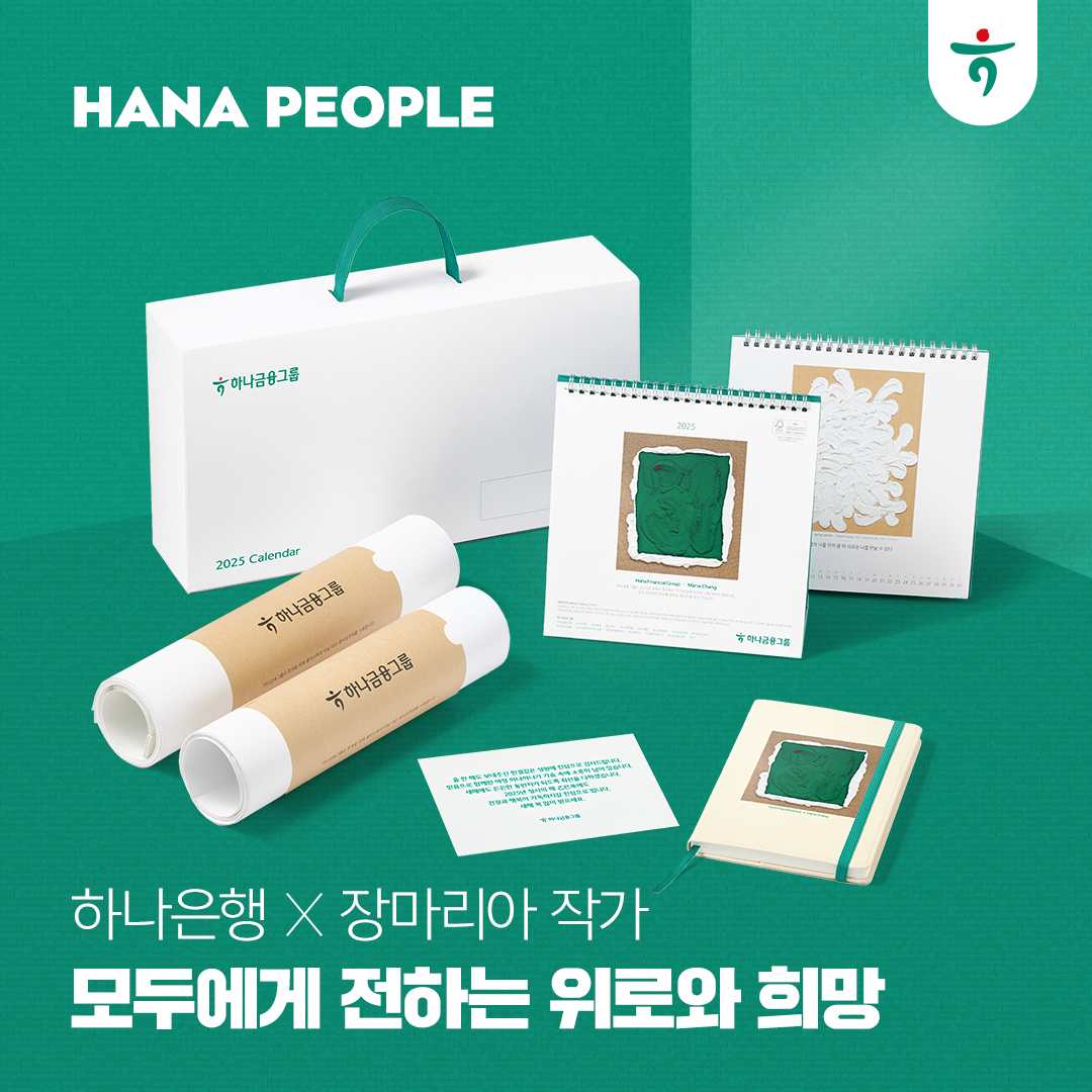 장마리아 작가 달력은 1년 열두 달 늘 곁에 두고 보는 오브제잖아요. 달력을 통해서 2025년 한 해 동안 좋은 일들과 행복한 한 해가 되기를 바라는 소망을 담았습니다. 은행 달력이 집에 걸려 있으면 부자가 된다는 이야기가 있는데요. 하나금융그룹 신년 달력과 함께 좋은 기운 얻으시길 바라겠습니다.