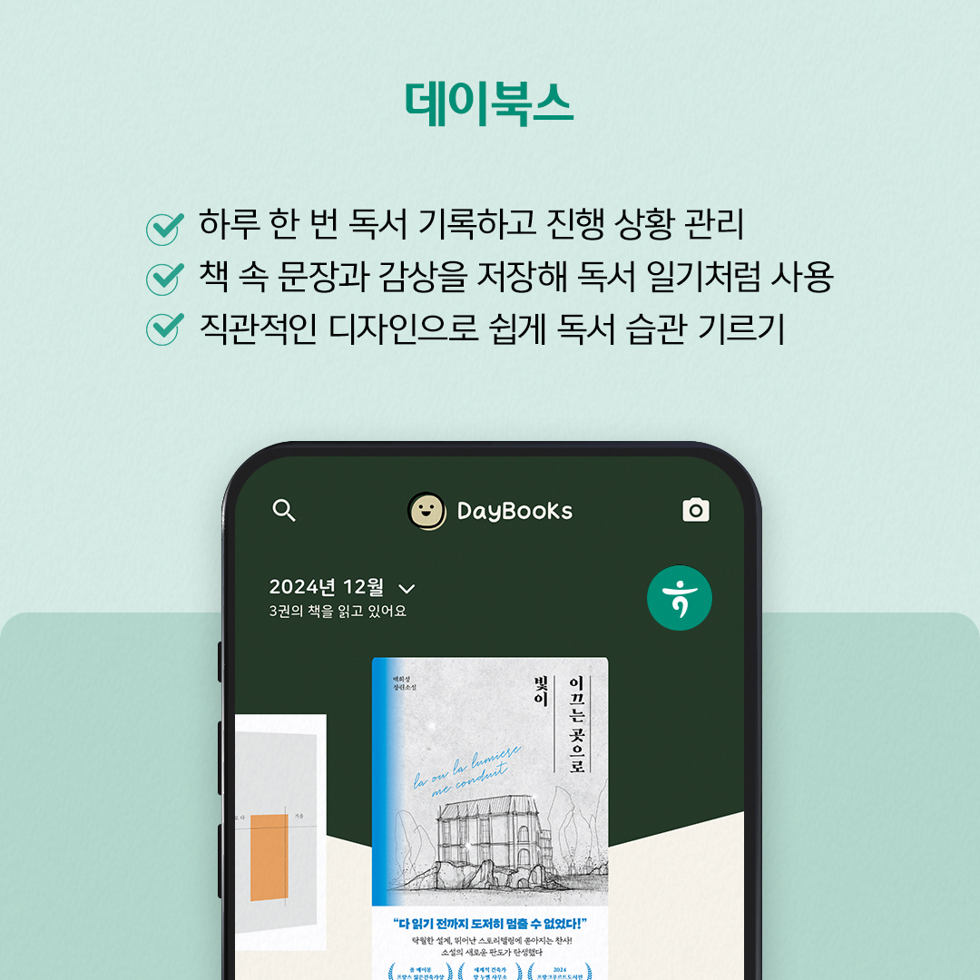 새로운 해를 맞아 체계적으로 독서 습관을 기를 때 유용한 ‘데이 북스’는 독서 기록을 관리하는 앱입니다. 사용자가 하루에 한 번 책을 읽으면 그 진행 상황을 기록할 수 있습니다. 매일 책을 읽고 나면 스티커가 붙고, 읽은 책들은 개인 책장을 만들어 분류해 관리할 수 있습니다. 또한 기억하고 싶은 책 속 문장들을 저장해 두고, 그 문장에서 느낀 개인적인 감상이나 감정들을 메모로 기록해 독서 일기처럼 활용할 수 있습니다. 직관적인 디자인과 단순한 사용법으로 누구나 쉽게 독서 습관을 기를 수 있도록 도와줍니다.
