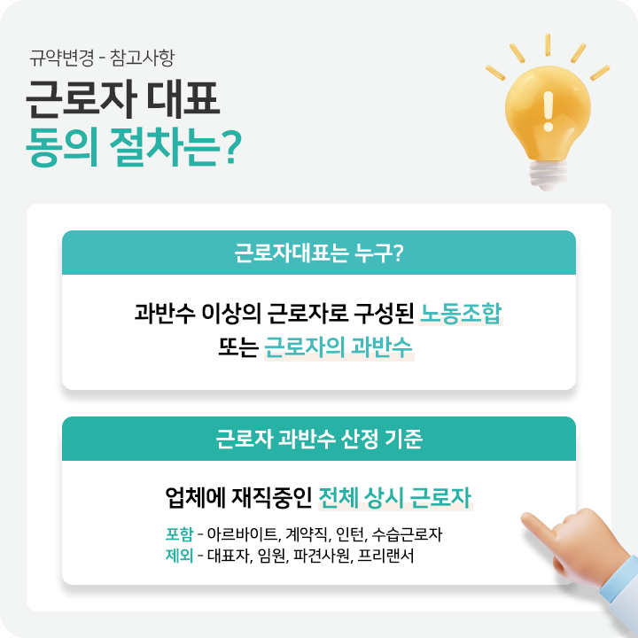 퇴직연금 규약 변경 신고 시 근로자 과반수 이상의 동의가 필수입니다. 과반수 산정 예시를 들자면 전체 상시 근로자수가 10명인 업체의 경우에는 6명 이상의 근로자 동의를 얻어야 요건이 충족됩니다.