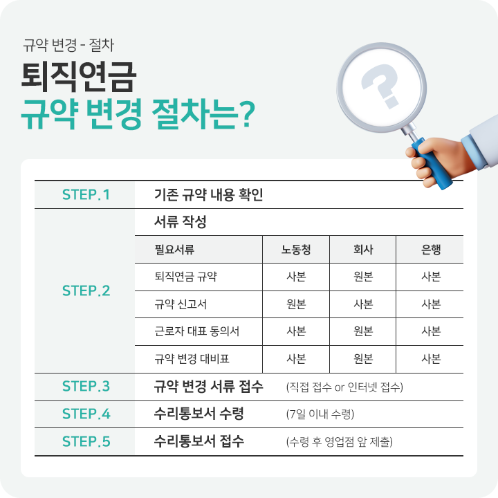 STEP 2. 퇴직연금 규약 변경에 필요한 서류들을 작성하고 준비합니다.