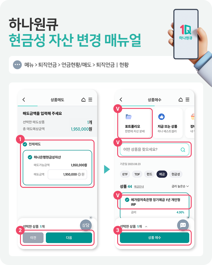 [하나연금닥터] 하나원큐로 잠든 퇴직연금 깨우기 – 현금성자산 변경 매뉴얼