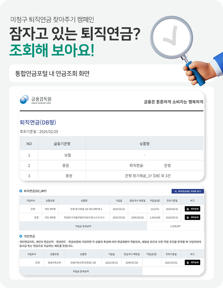 나에게도 잠자고 있는 퇴직연금이 있을까? 조회해 보아요!