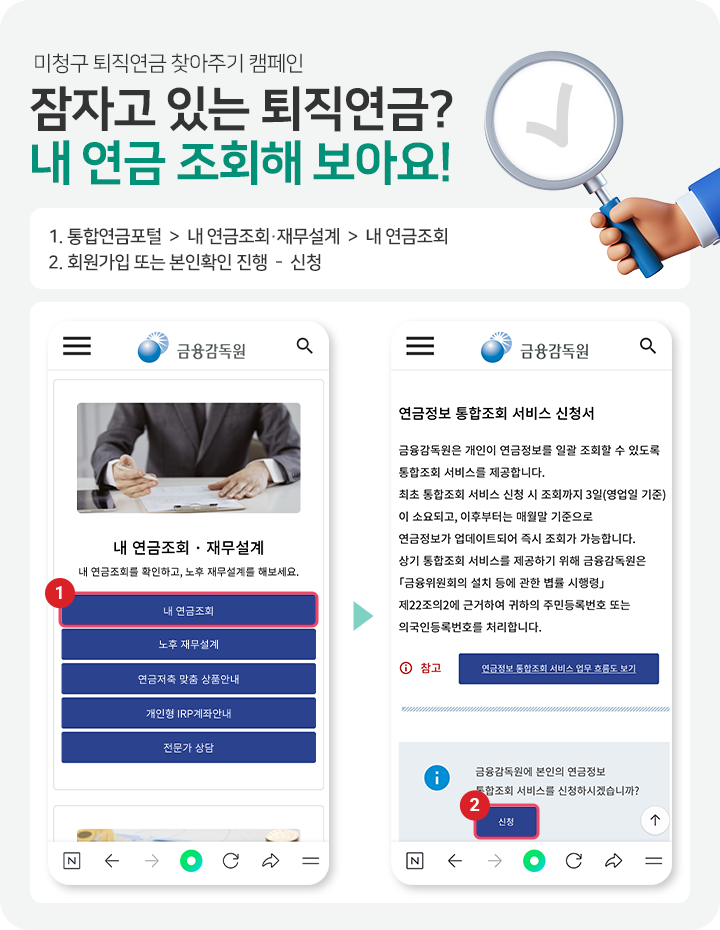 3. 금융감독원에 본인의 연금정보 통합조회 서비스를 신청해주세요.