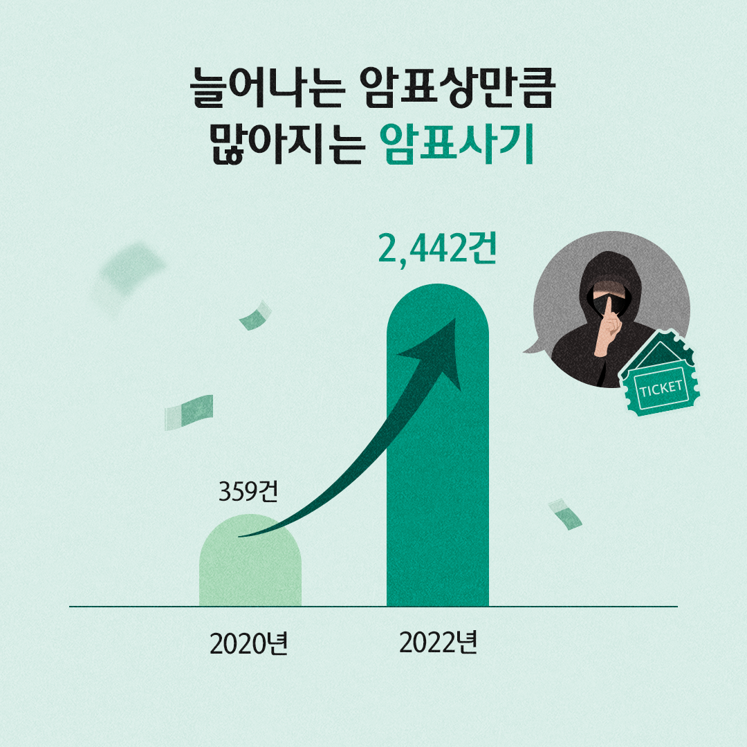 암표 문제가 팬심에 찬물을 끼얹는 사회적 이슈로 떠오르면서 이를 제도와 기술로 막기 위한 움직임도 활발해지고 있습니다. 지난해 3월, 매크로를 이용해 티켓을 예매하고 이를 웃돈을 얹어 되파는 행위를 처벌하는 공연법 개정안이 통과되었고, 위반 시 1년 이하의 징역 또는 1,000만 원 이하의 벌금이 부과됩니다. 그러나 처벌 수위가 낮고 일반적인 암표 행위는 여전히 경범죄 처벌법상 20만 원 벌금 수준이라 실효성이 떨어지는데요. 더구나 매크로를 이용한 티켓 구매 여부의 확인도 어렵죠. 따라서 업계에서는 암표에 대한 경각심을 높이고, 일반 암표 행위에 대한 처벌 수위도 대폭 강화해야 한다는 목소리가 나옵니다.👀